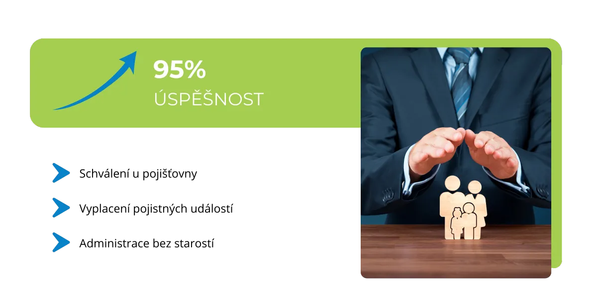 Protože se staráme o každý detail a vybíráme pro vás pojištění na míru. Máme 95% úspěšnost při schvalování i vyplácení pojistných událostí a celý proces vyřídíme rychle a bez zbytečných komplikací.